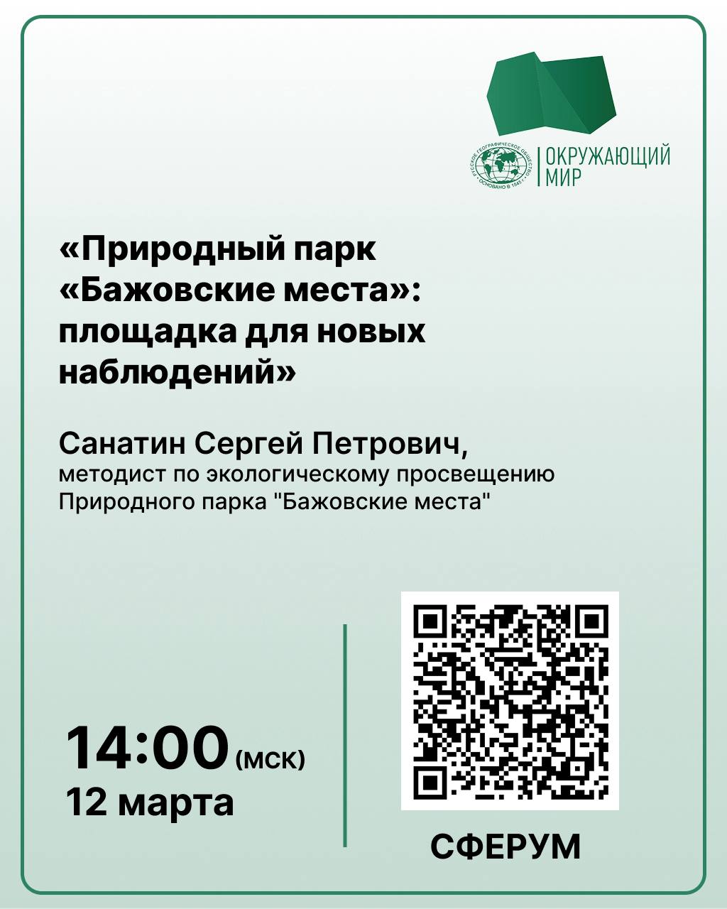 Лектор: Санатин Сергей Петрович, методист по экологическому просвещению Природного парка «Бажовские места»