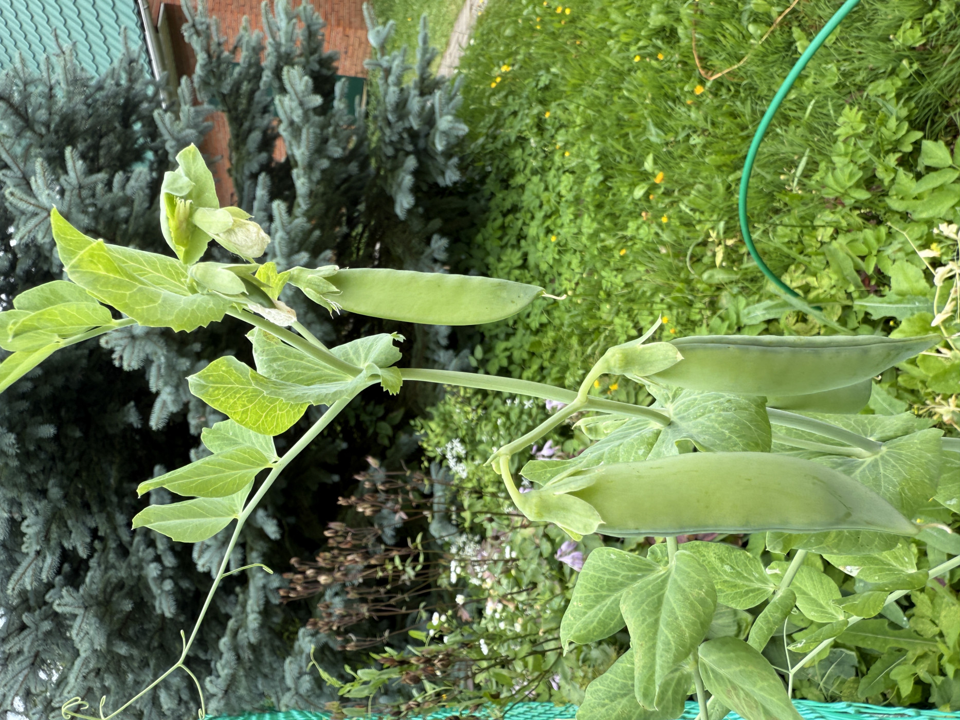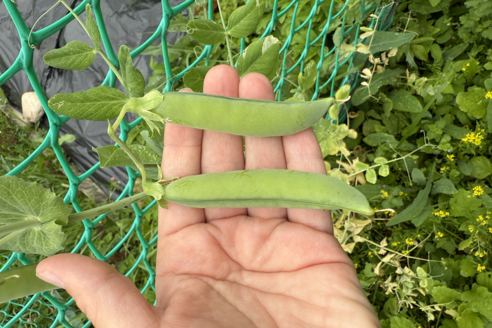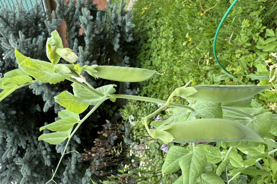 | Описание явления | Горох начинает созревать, стручки зеленые, в основном плоские, но уже есть с небольшими семенами. |