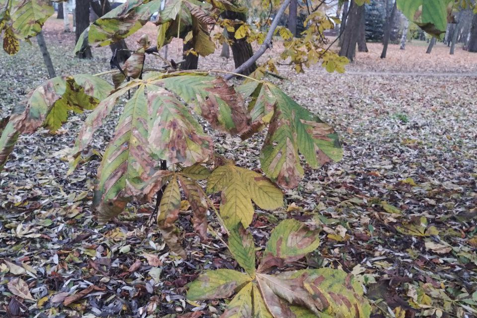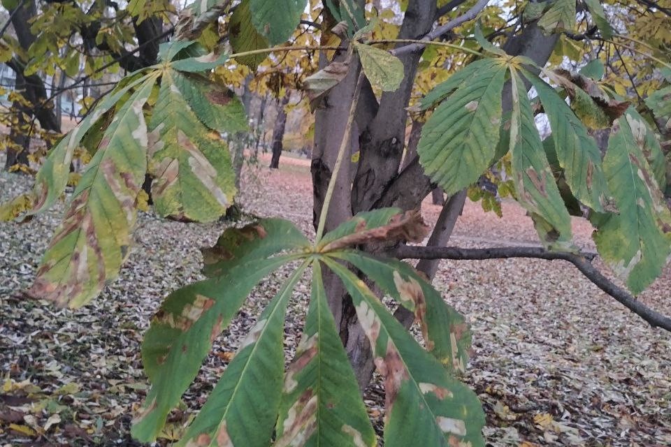 | Описание явления | степень поражения листьев минирующей молью до 50% |
