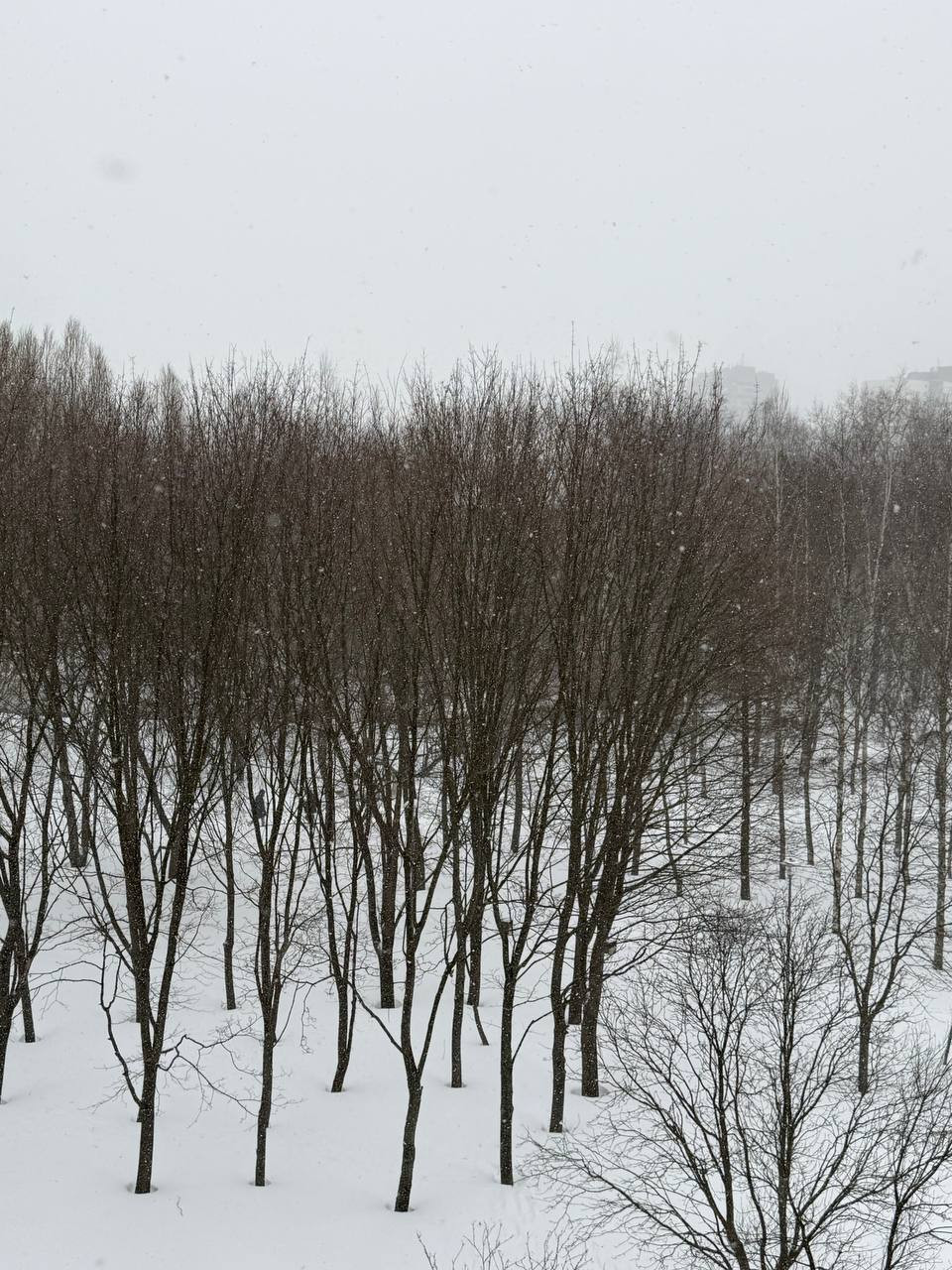 | Описание явления | 12:30. Снегопад усилился. Падают крупные хлопья, видимость снижена. Температура около −5°C. Снег активно накапливается на земле и объектах. Ветер умеренный, небо облачное. |