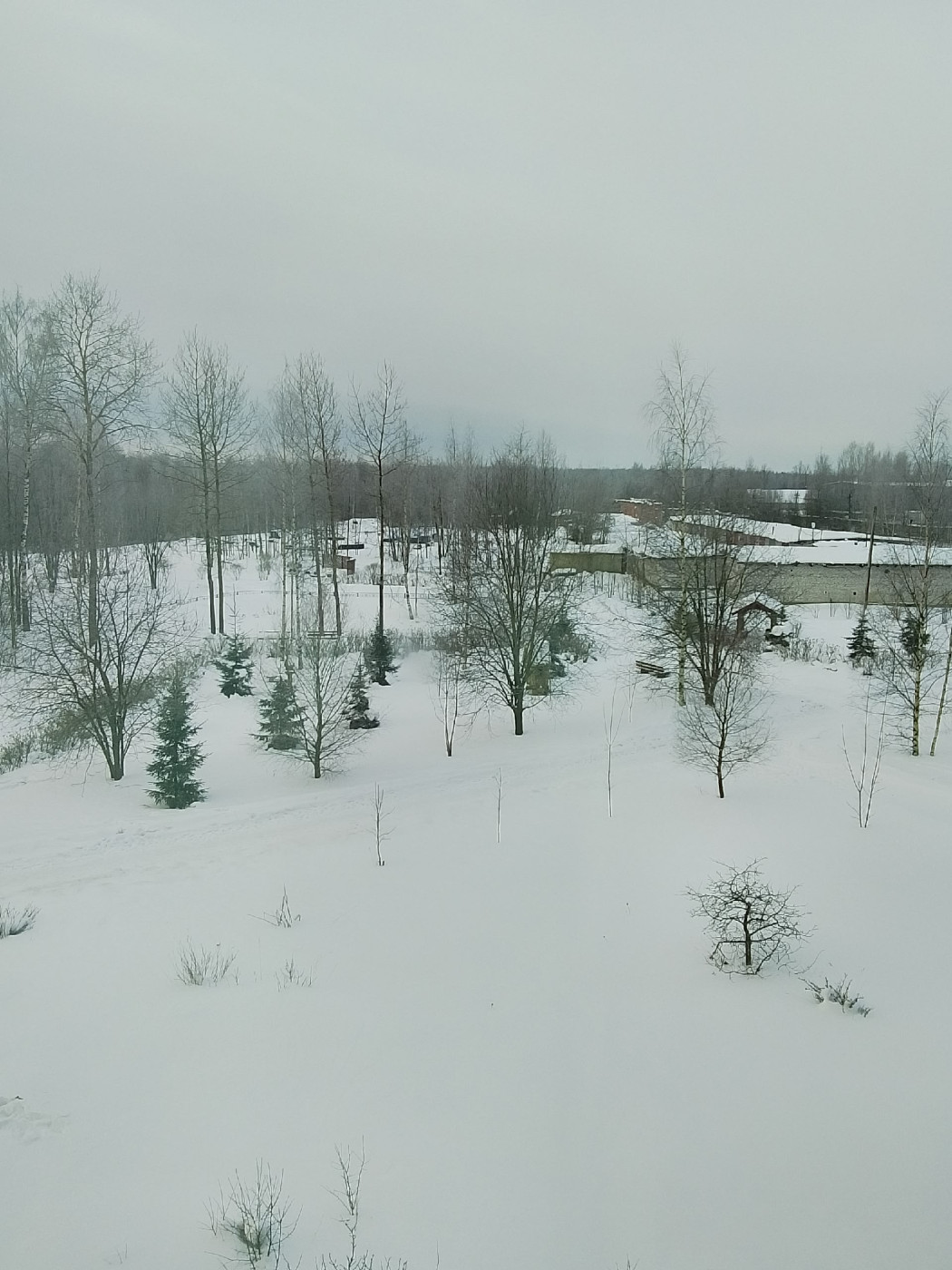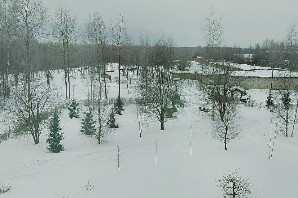 Сплошные облака, ветер северо- восточный,слабый, температура воздуха -10 градусов по Цельсию, идёт мелкий снег.